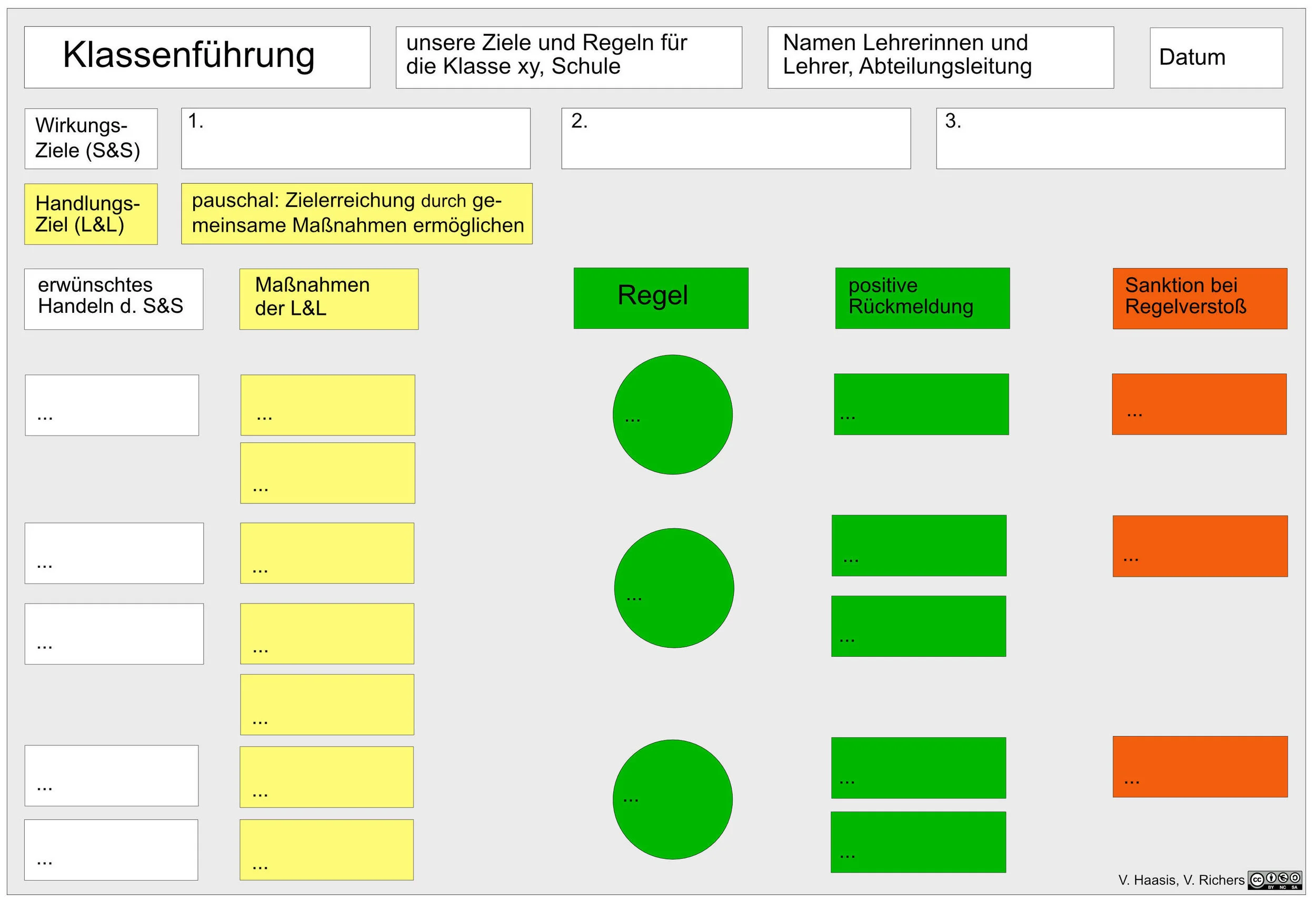 Arbeitsplakat (Flipchart quer) für Klassenteams, die Klassenregeln von pädagogischen Ziele her entwicklen