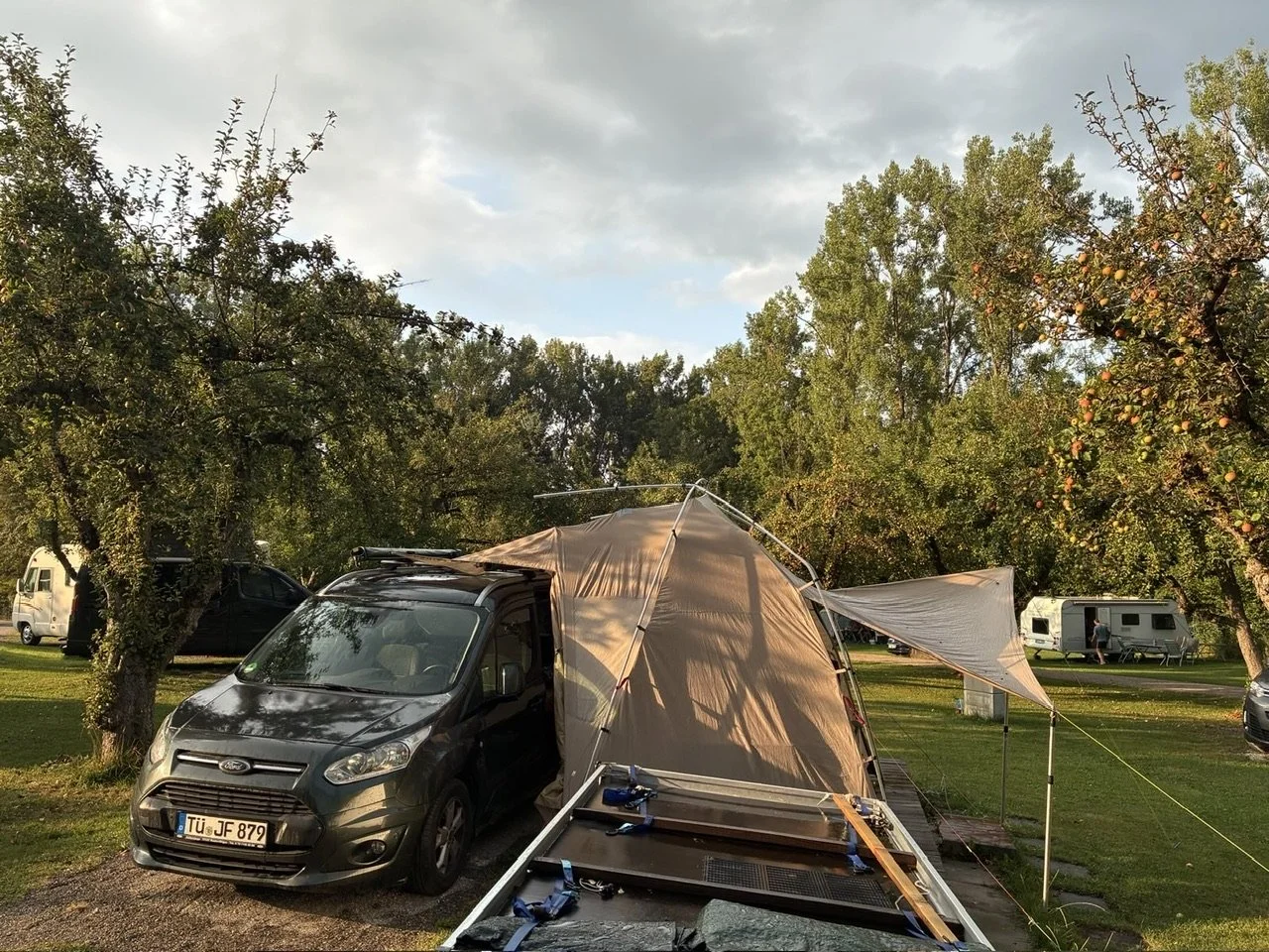 Einen Platz für die Nacht musste ich nicht suchen, nur buchen: Camping Rottenburg, mein Zelt-Heimathafen, 2024 schon mehrmals besucht. Fühlt sich safe an, ist auch safe.