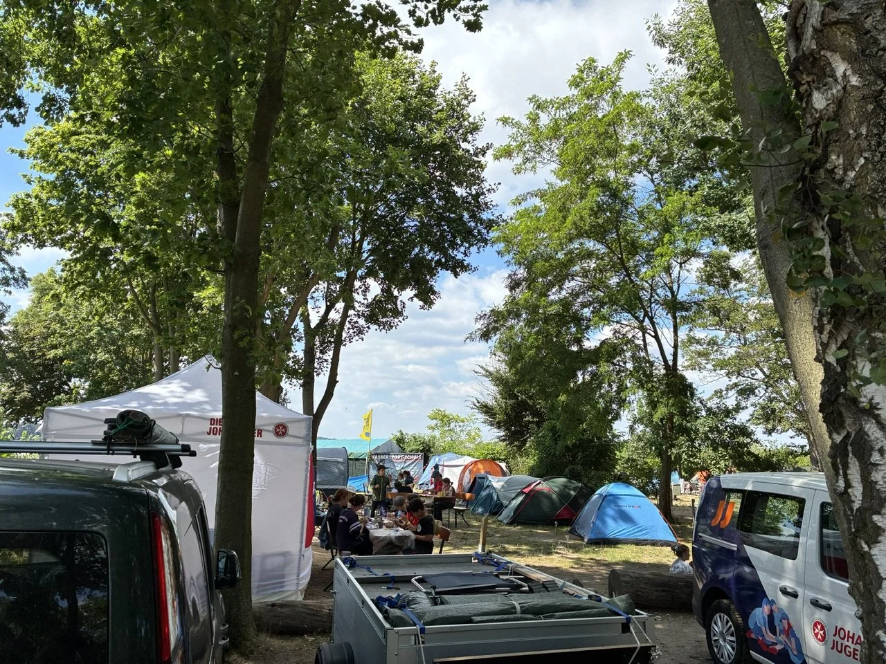 Auch die „Jungen Johanniter“, Ortsgruppe Potsdam, waren mit einer Gruppe von 20 Kindern ca. 5-7 mit am Start. Der mittlere von den drei Zeltbereichen war für sie reserviert.