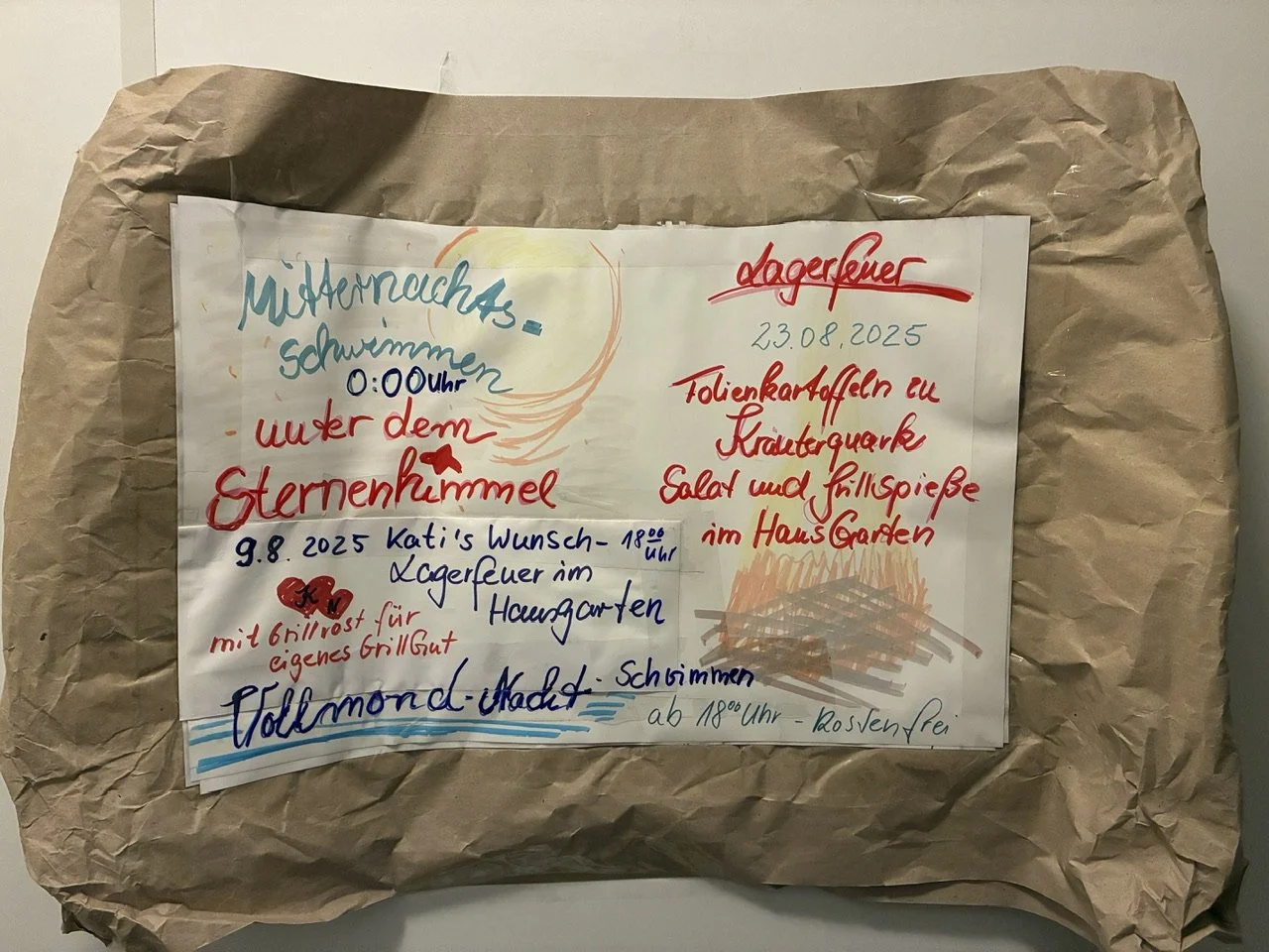 … hängt schon seit einigen Tagen eine Einladung, walldorfmäßig, mit Wachskreiden, gemalt und geschrieben: