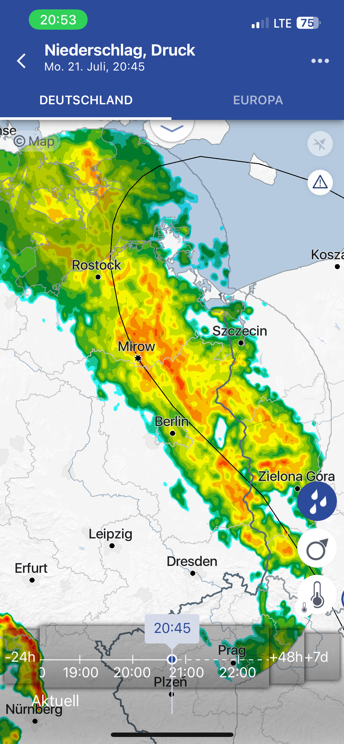 Am Mittwochmittag ab Marburg nur Autobahn, schön langsam, max. 90 km/h, wie es bei einem Gespann mit Anhänger sein muss, üble Hitze, es ging alles glatt.