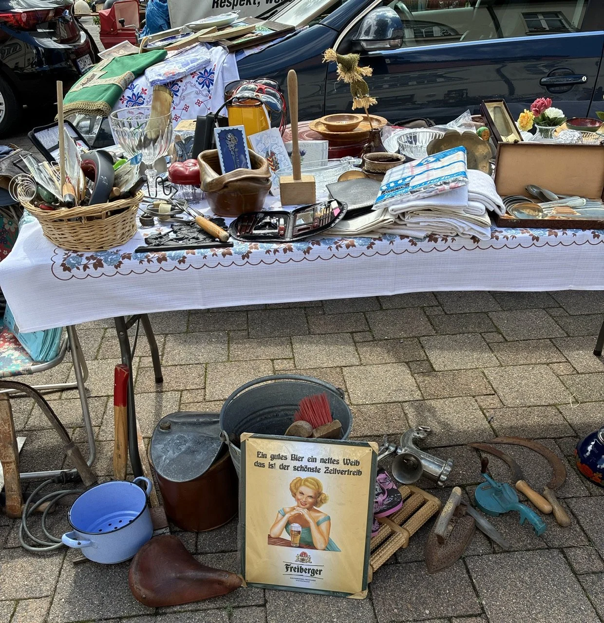 Den Samstag nutze ich für „Umbauten“. Es hat sich in den vergangenen „ZeltZeit“ gezeigt, dass es sehr nervig werden kann, wenn der Stauplatz im Anhänger und im Auto allzu knapp ist. Ständiges Hin-und-Her-Räumen, Tüfteln beim Packen, Umräumen, wenn der Hängerdeckel nicht schließt, … Also: Reduzieren. Es dauert ‚ne Weile, schließlich habe ich ja schon einmal gut überlegt: beim Einpacken im Mai. Es kommt Einiges zusammen, was nun in der Safebox in Reutlingen verschwindet. Wenn ich mir den Hängerinhalt so anschaue, fällt auf, dass es die schönen Dinge sind, die sperrig sind und viel Stauraum brauchen: die Teppiche, der schöne HolzTisch, der schöne HolzStuhl.